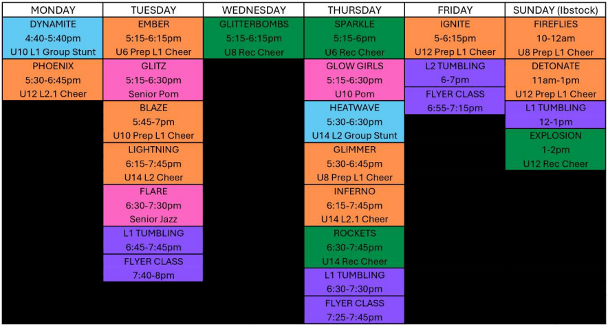 Please note: The timetable does not include any monthly or off-season training such as travel teams.